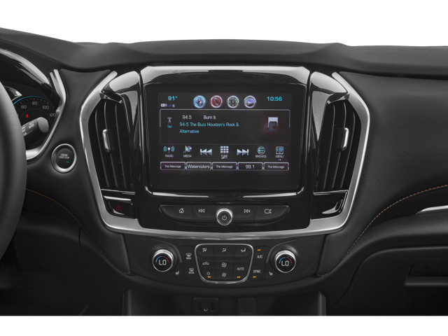 AUDIO SYSTEM, CHEVROLET MYLINK RADIO with Navigation, 8" diagonal color touch-screen and AM/FM stereo, includes Bluetooth® streaming audio for music and most phones; featuring Android Auto and Apple CarPlay capability for compatible phones (STD), Wipers, front intermittent with washers, Wiper, rear intermittent with washer, Windows, power with driver Express Up/Down and front passenger Express-Down, Wheels, 20" (50.8 cm) machined face aluminum with Technical Gray pockets, Wheel, spare, 18" (45.7 cm) steel, Visors, driver and passenger illuminated vanity mirrors, covered, USB ports, Universal Home Remote, includes garage door opener, programmable, Umbrella holders, driver and front passenger doors, Transmission, 9-speed automatic, Traction Mode Select, Tool kit, road emergency, Tires, P255/55R20 all-season blackwall, Tire, compact spare, T135/70R18, blackwall, Tire Pressure Monitor, includes Tire Fill Alert (Does not monitor spare.), Teen Driver mode a configurable feature that lets you activate customizable vehicle settings associated with a key fob, to encourage safe driving behavior. It can limit certain vehicle features, and it prevents certain safety systems from being turned off. An in-vehicle report gives you information on your teen's driving habits and helps you to continue to coach your new driver, Suspension, Ride and Handling, Surround Vision, Bird's Eye view, includes rear vision camera, Steering wheel, leather-wrapped, 3-spoke.