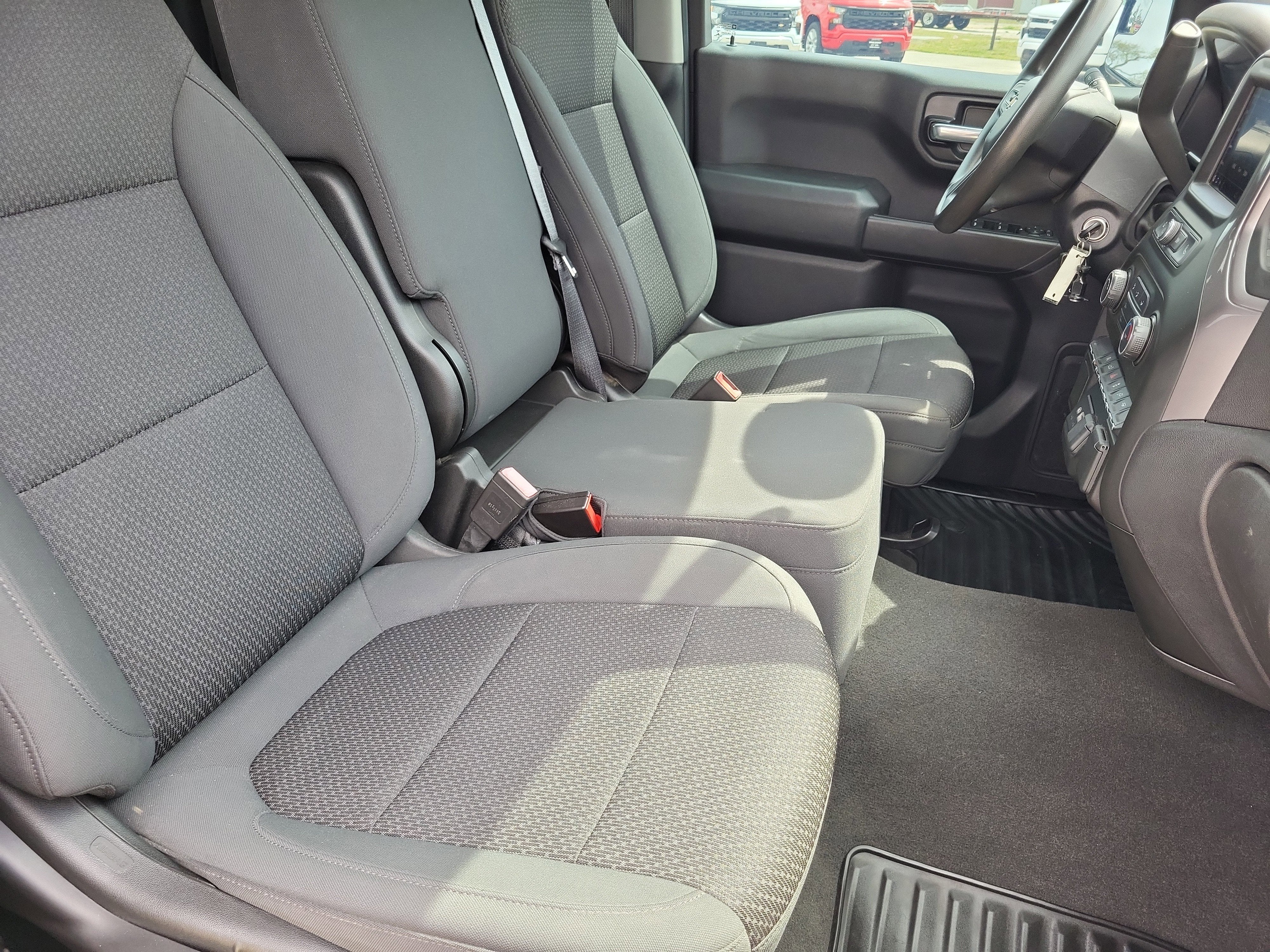 WHEELS, 20" X 9" (50.8 CM X 22.9 CM) BRIGHT SILVER PAINTED ALUMINUM (STD), TRANSMISSION, 8-SPEED AUTOMATIC, ELECTRONICALLY CONTROLLED with overdrive and tow/haul mode. Includes Cruise Grade Braking and Powertrain Grade Braking (STD), TIRES, 275/60R20 ALL-SEASON, BLACKWALL (STD), SEATS, FRONT 40/20/40 SPLIT-BENCH with covered armrest storage (STD), SATIN STEEL METALLIC, REAR AXLE, 3.42 RATIO, POWER OUTLET, INSTRUMENT PANEL, 120-VOLT (400 watts shared with (KC9) bed mounted power outlet), POWER OUTLET, BED MOUNTED, 120-VOLT (400 watts shared with (KI4) instrument panel mounted power outlet), LICENSE PLATE KIT, FRONT, JET BLACK, CLOTH SEAT TRIM. This Chevrolet Silverado 1500 has a powerful Turbocharged Gas I4 2.7L/166 engine powering this Automatic transmission.
