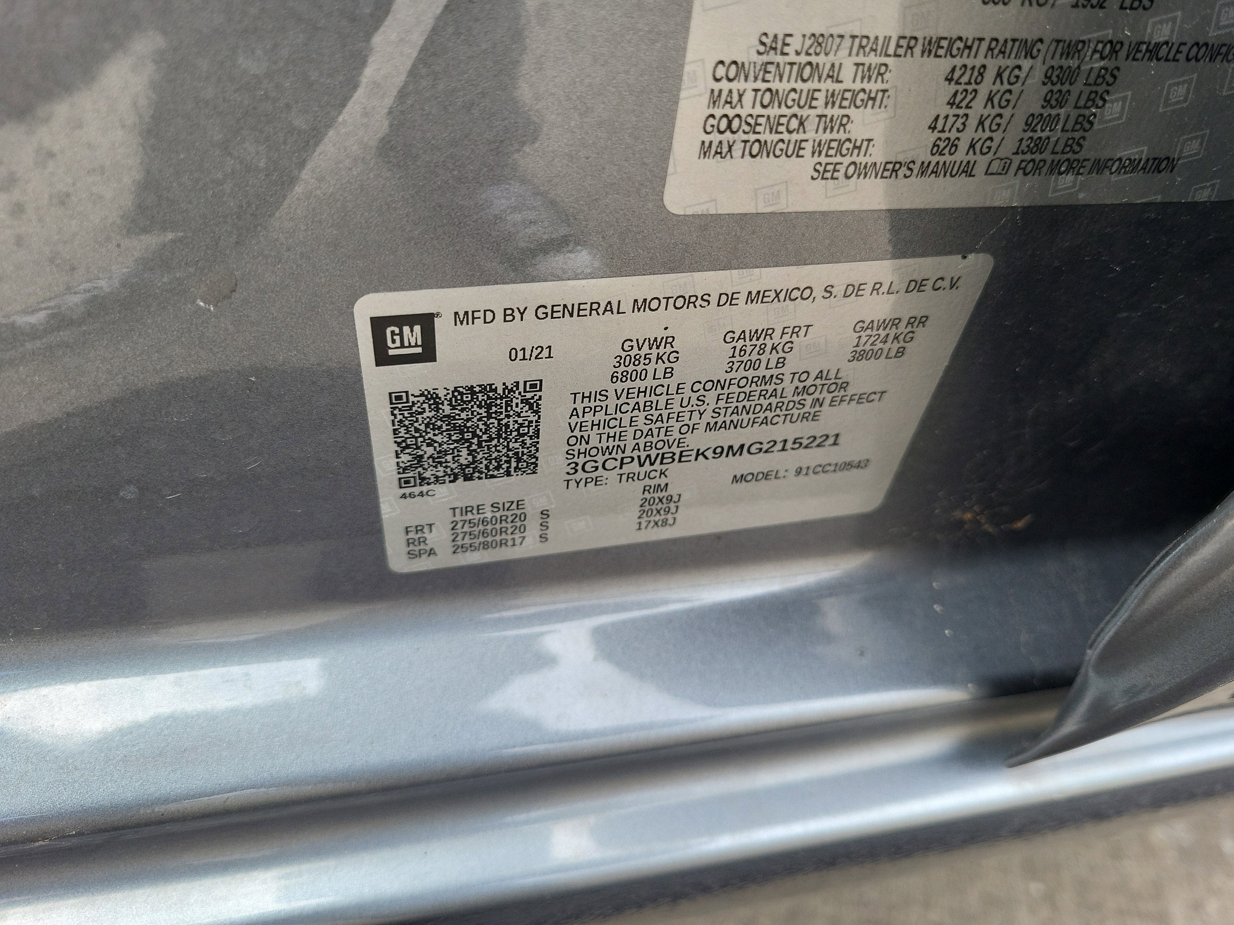 GVWR, 6800 LBS. (3084 KG) (STD), ENGINE, 2.7L TURBO (310 hp [231 kW] @ 5600 rpm, 348 lb-ft of torque [471 Nm] @ 1500 rpm) Includes (MQE) 8-speed automatic transmission and (KW5) 220-amp alternator.) (STD), CUSTOM PREFERRED EQUIPMENT GROUP includes standard equipment, AUTO-LOCKING REAR DIFFERENTIAL, AUDIO SYSTEM, CHEVROLET INFOTAINMENT 3 SYSTEM 7" diagonal color touchscreen, AM/FM stereo. Additional features for compatible phones include: Bluetooth® audio streaming for 2 active devices, voice command pass-through to phone, wired Apple CarPlay and Android Auto capable. (STD), AIR CONDITIONING, SINGLE-ZONE MANUAL, SEMI-AUTOMATIC, Windows, power rear, express down, Window, power front, passenger express down, Window, power front, drivers express up/down, Wheels, 20" x 9" (50.8 cm x 22.9 cm) Bright Silver painted aluminum, Wheel, 17" x 8" (43.2 cm x 20.3 cm) full-size, steel spare, USB ports, 2 (first row) located on instrument panel, Transmission, 8-speed automatic, electronically controlled with overdrive and tow/haul mode. Includes Cruise Grade Braking and Powertrain Grade Braking (Included and only available with (L3B) 2.7L Turbo engine.), Tires, 275/60R20 all-season, blackwall, Tire, spare 255/80R17SL all-season, blackwall, Tire Pressure Monitoring System with Tire Fill Alert (does not apply to spare tire), Tire carrier lock, keyed cylinder lock that utilizes same key as ignition and door, Theft-deterrent system, unauthorized entry, Teen Driver a configurable feature that lets you activate customizable vehicle settings associated with a key fob, to help encourage safe driving behavior. It can limit certain available vehicle features, and it prevents certain safety systems from being turned off. An in-vehicle report card gives you information on driving habits and helps you to continue to coach your new driver, Taillamps, LED with signature.