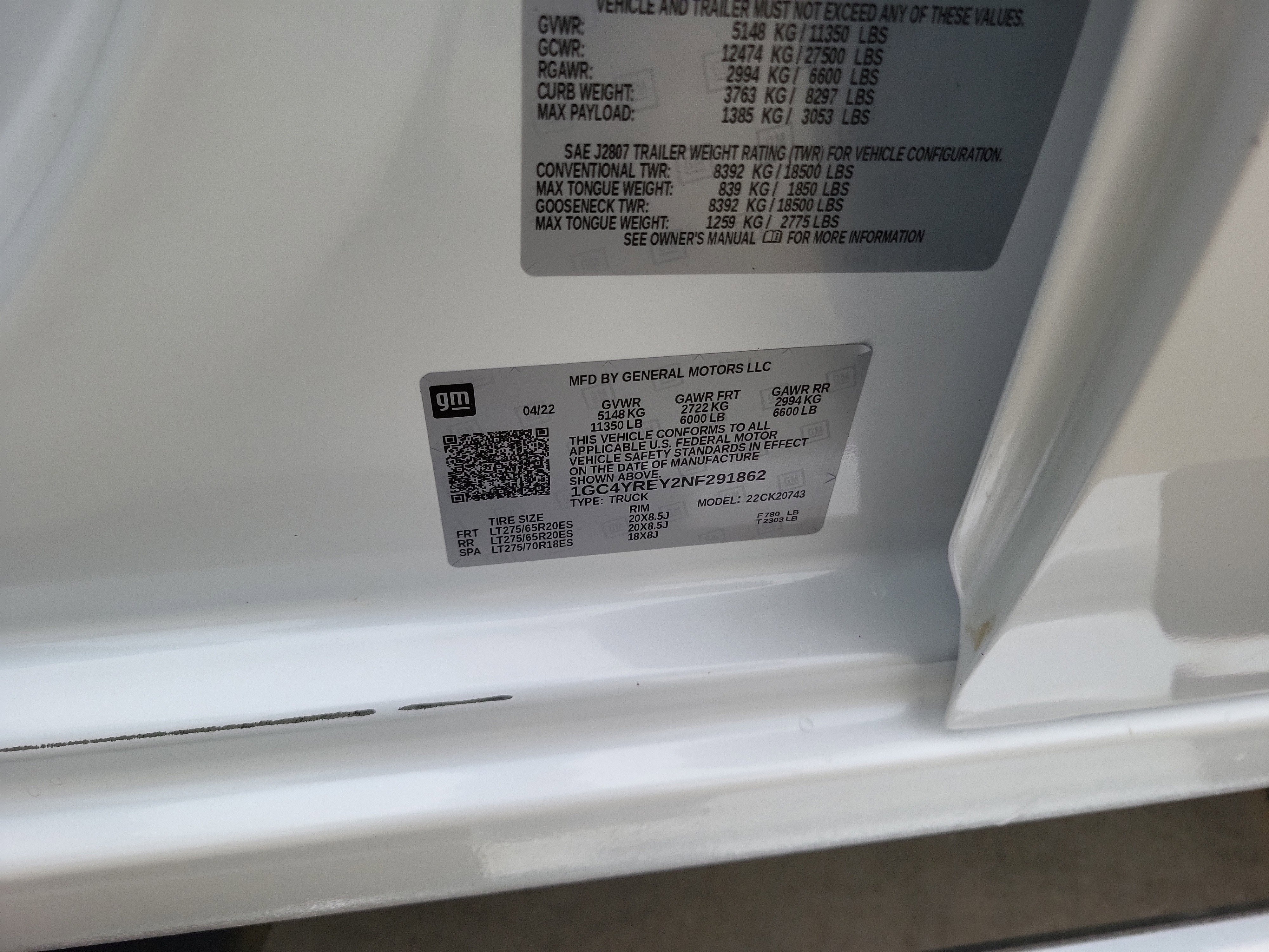 HIGH COUNTRY DELUXE includes (PDJ) Safety Package II, (CWM) Technology Package and (Z6A) Gooseneck/5th Wheel Prep Package, GOOSENECK/5TH WHEEL PREP PACKAGE Hitch platform to accept Gooseneck or 5th Wheel hitch. Includes hitch platform with tray to accept ball, stamped bed holes with removable caps installed and bed mounted 7-pin trailer harness (similar to UY2 harness). , MULTI-COLOR 15" DIAGONAL HEAD-UP DISPLAY, LPO, ALL-WEATHER FLOOR LINERS 1st and 2nd rows, (includes Z71 logo on front mats), LICENSE PLATE KIT, FRONT, LANE DEPARTURE WARNING, LAMPS, SMOKED AMBER ROOF MARKER, (LED), JET BLACK/UMBER, PERFORATED LEATHER SEAT TRIM, IRIDESCENT PEARL TRICOAT, INTELLIBEAM, AUTOMATIC HIGH BEAM ON/OFF, HILL DESCENT CONTROL, HIGH COUNTRY PREFERRED EQUIPMENT GROUP includes standard equipment, GVWR, 11,350 LBS. (5148 KG), FORWARD COLLISION ALERT, FOLLOWING DISTANCE INDICATOR, EXHAUST BRAKE, ENGINE, DURAMAX 6.6L TURBO-DIESEL V8 B20-Diesel compatible, (445 hp [332 kW] @ 2800 rpm, 910 lb-ft of torque [1220 Nm] @ 1600 rpm), ENGINE BLOCK HEATER, AUTOMATIC EMERGENCY BRAKING, AUDIO SYSTEM, CHEVROLET INFOTAINMENT 3 PREMIUM SYSTEM WITH CONNECTED NAVIGATION 8" diagonal HD color touchscreen, AM/FM stereo, Bluetooth® audio streaming for 2 active devices, wireless Apple CarPlay and Android Auto capable, enhanced voice recognition, additional memory for in-vehicle apps, cloud connected personalization for select infotainment and vehicle settings. Subscription required for enhanced and connected services after trial period. (STD) (Includes (PZ8) High Guidance with Hitch View.).