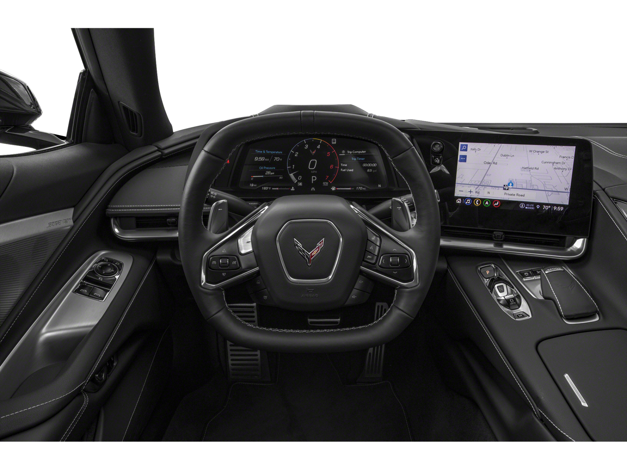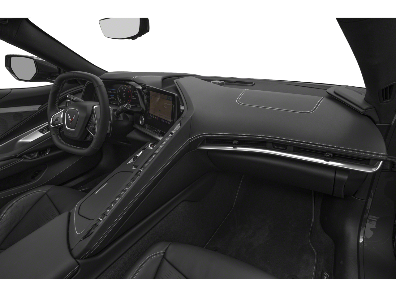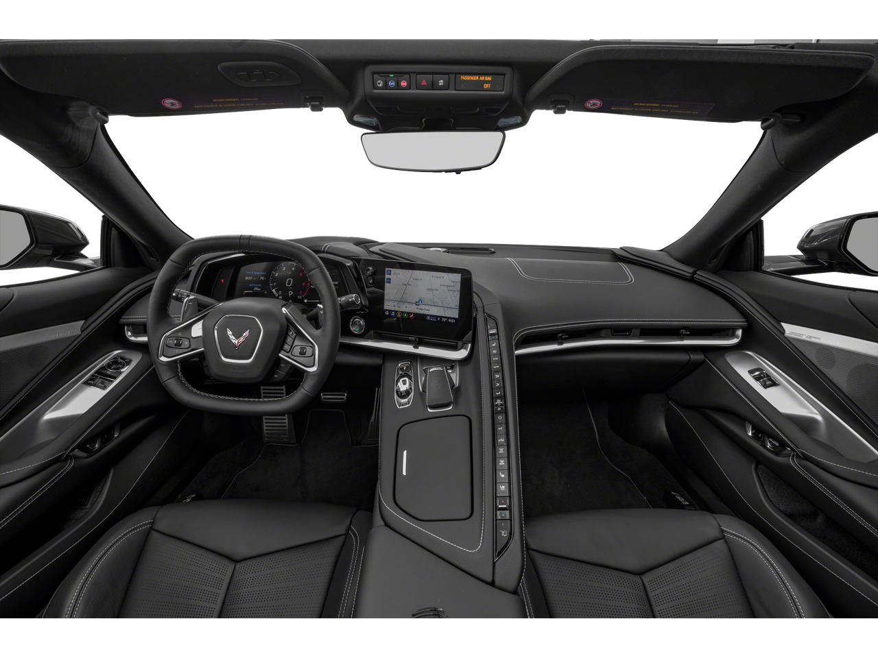 BRAKES, Z51 PERFORMANCE larger brake rotors with Z51 logo on calipers; 13.6" (345 mm) front and 13.8" (350 mm) rear, 1LT PREFERRED EQUIPMENT GROUP includes standard equipment, Wireless Apple CarPlay/Wireless Android Auto, Wipers, front intermittent, Windows, power with driver and passenger Express-Down/Up, Wi-Fi Hotspot capable (Terms and limitations apply. See onstar.com or dealer for details.), Wheels, 19" x 8.5" (48.3 cm x 21.6 cm) front and 20" x 11" (50.8 cm x 27.9 cm) rear 5-open-spoke Bright Silver-painted aluminum, Visors, driver and passenger illuminated vanity mirrors, covered, Vehicle health management provides advanced warning of vehicle issues, Transmission, 8-speed dual clutch, includes manual and auto modes, Traction control, all-speed, Tires, 245/35ZR19 front and 305/30ZR20 rear, blackwall, all-season, performance, Theft-deterrent system, vehicle, push button start, immobilizer and audible visual alarm, Teen Driver a configurable feature that lets you activate customizable vehicle settings associated with a key fob, to help encourage safe driving behavior. It can limit certain available vehicle features, and it prevents certain safety systems from being turned off. An in-vehicle report card gives you information on driving habits and helps you to continue to coach your new driver, Suspension, Corvette standard, Steering, power, electric speed-sensitive, rack-and-pinion, variable ratio, Steering wheel, leather-wrapped, Steering wheel controls, audio, voice recognition, cruise and Driver Information Center, Steering column, power tilt and telescopic, Seats, GT1 bucket.